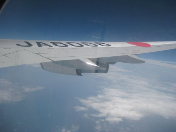 經濟艙的座位比我想像中狹窄,不過也不至於不舒服。我坐在窗邊,媽媽坐在我旁邊,我從小小的窗戶往外看,桃園機場的工作人員向著我們揮手。原來要起飛啦。從緩慢的滑行到迅速的衝刺,機身昂起,那一瞬間我們就離地了。地面上的景物變得渺小,彷彿模型玩具一般,不久,窗外飄過陣陣霧氣,如果能伸手,我就能碰觸到白雲,真的好近。飛在空中的感覺是真實的,然而達成一直以來出國旅行的心願,這樣的心情卻如在夢中。
